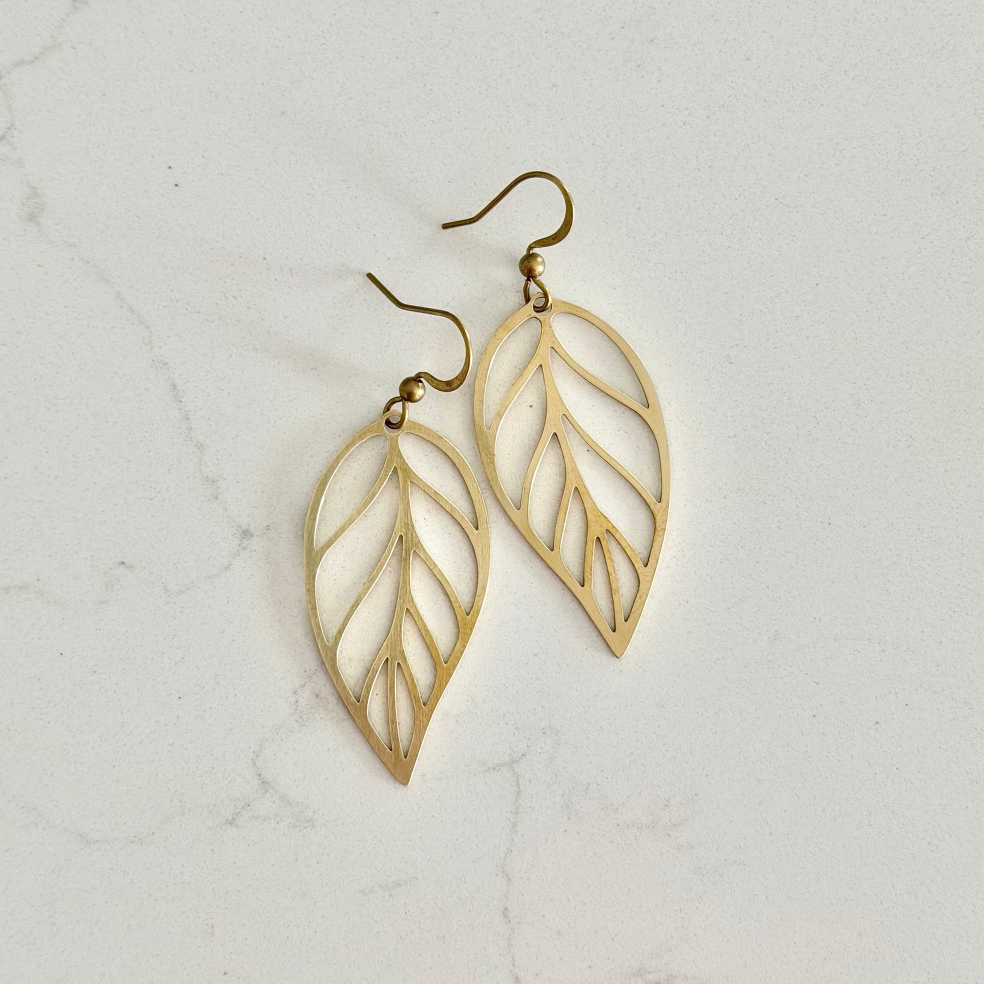 Brass Leaf Earrings | Large