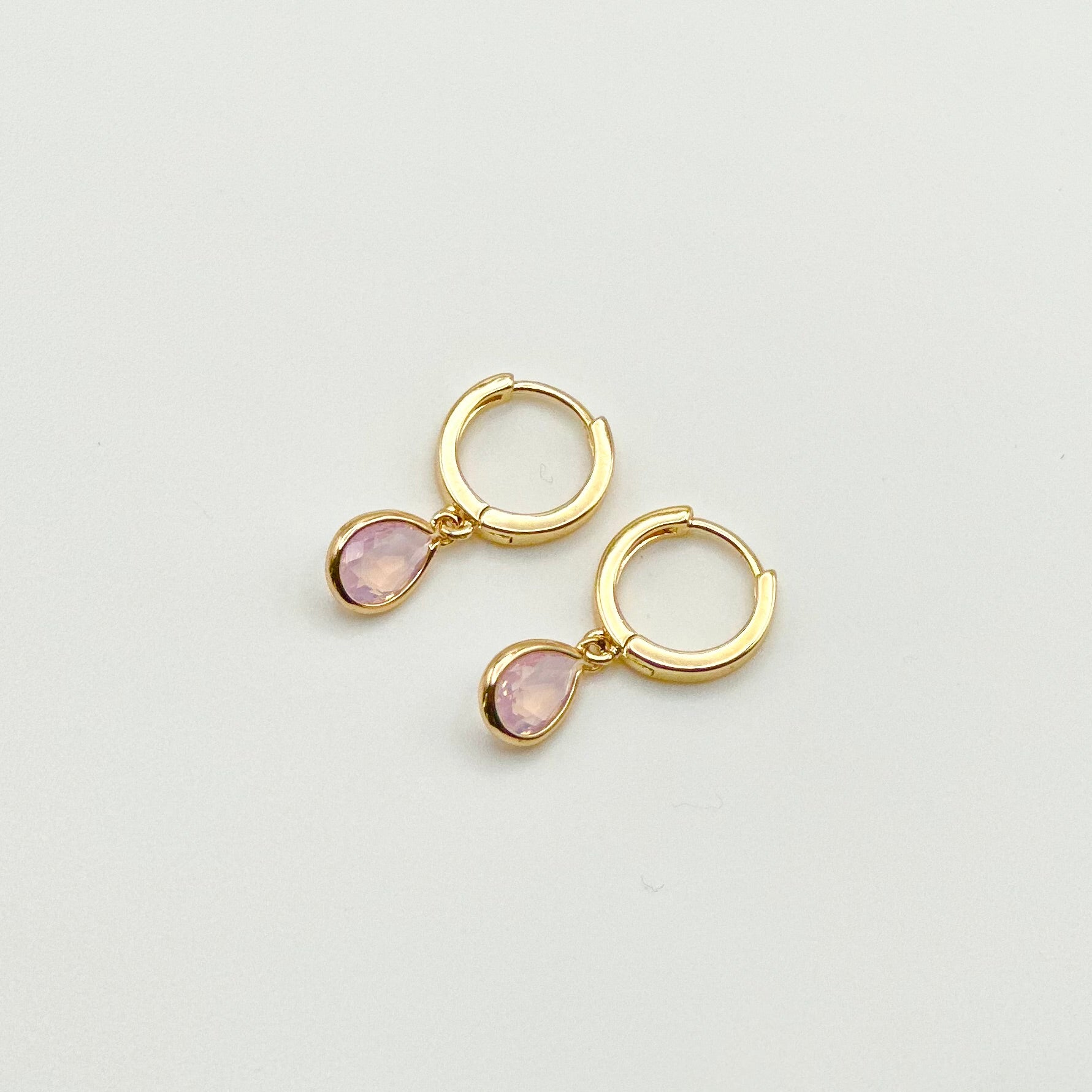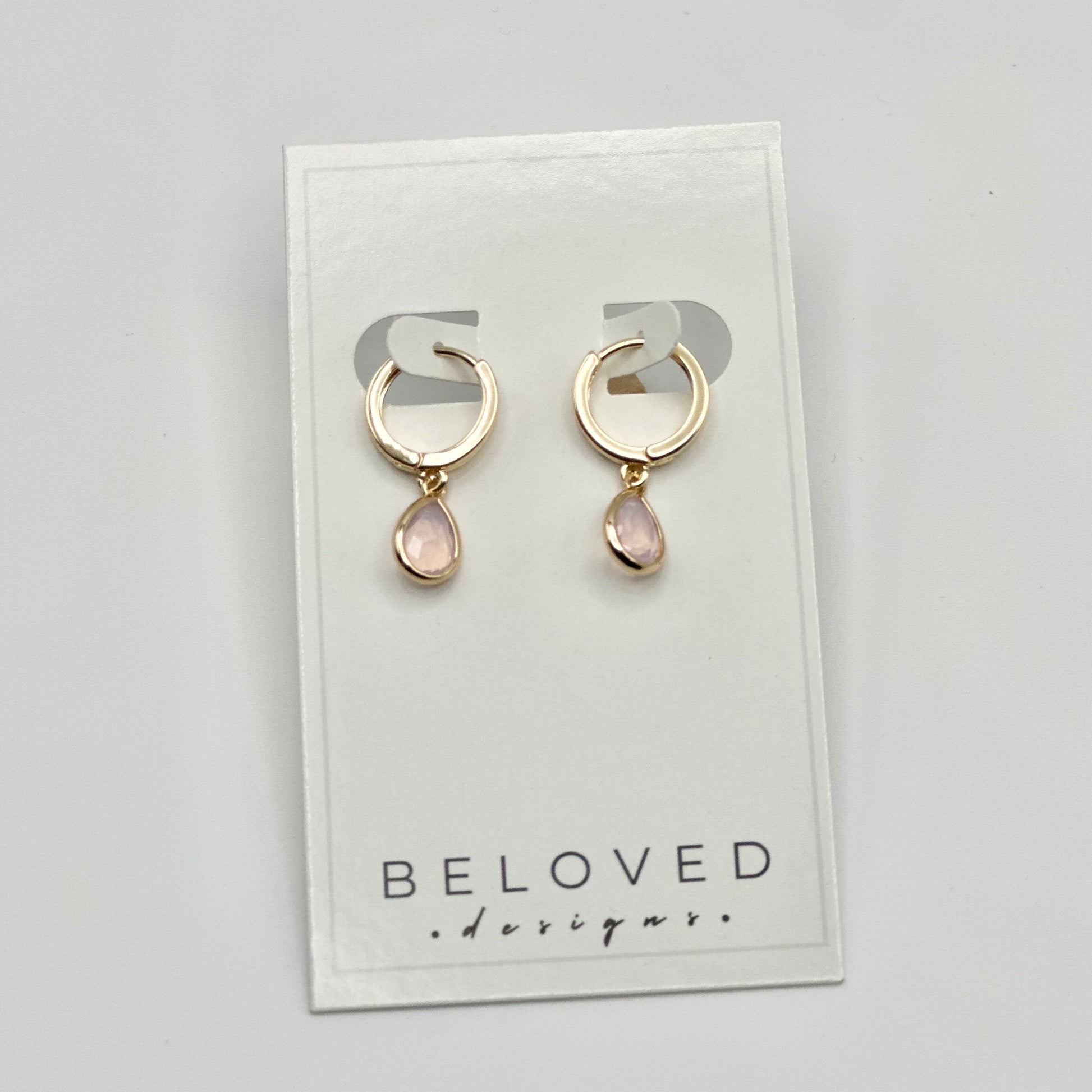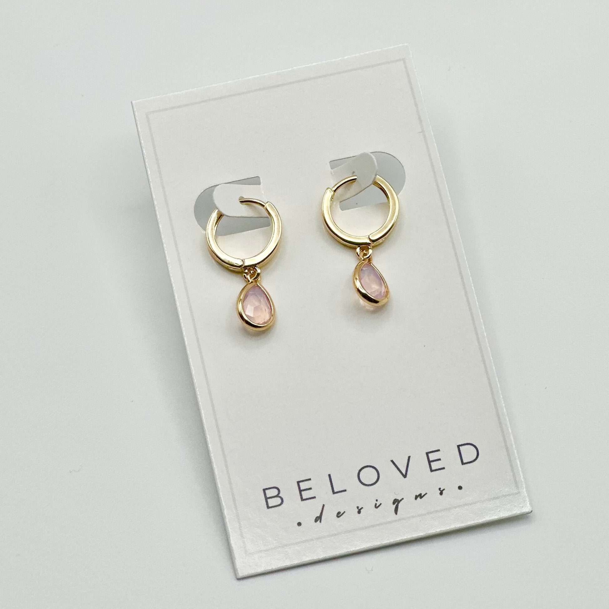 Gold Huggie + Dusty Pink Teardrop Earrings
