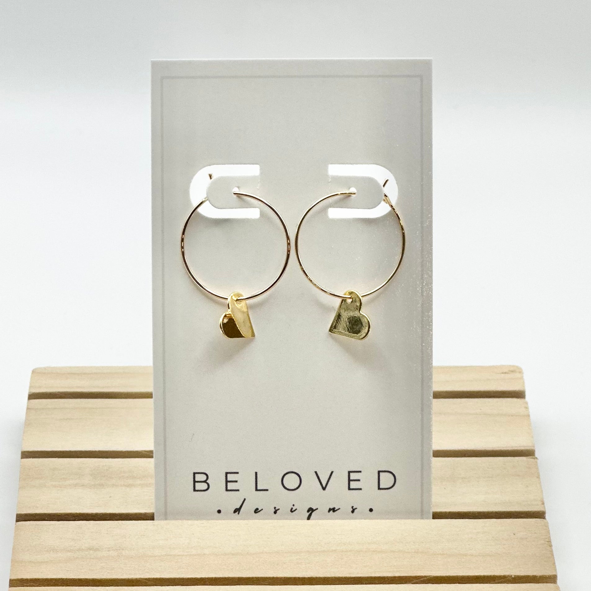 These earrings measure 5/8” wide and 1” long. Hoops and hearts are gold plated. All metals used are nickel and lead free.