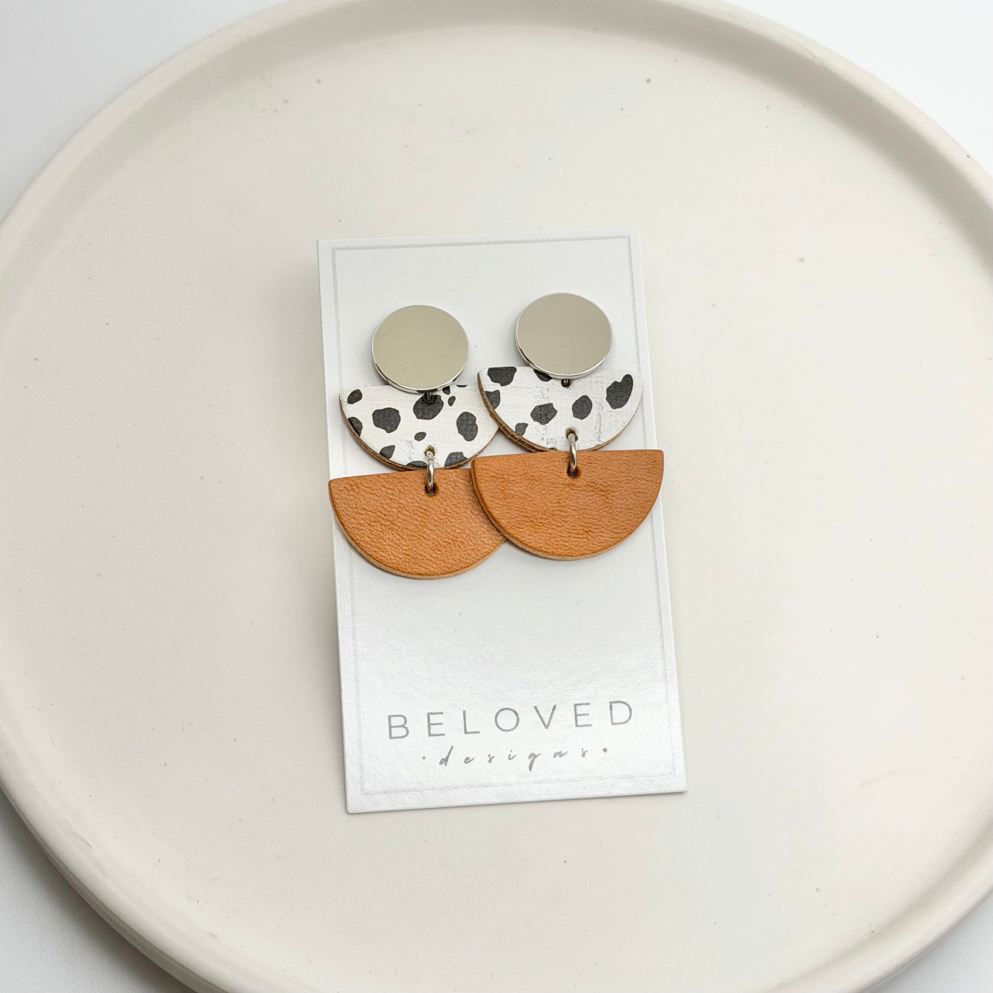 Leather Double Half Circle + Rhodium Stud | Dalmatian + Natural