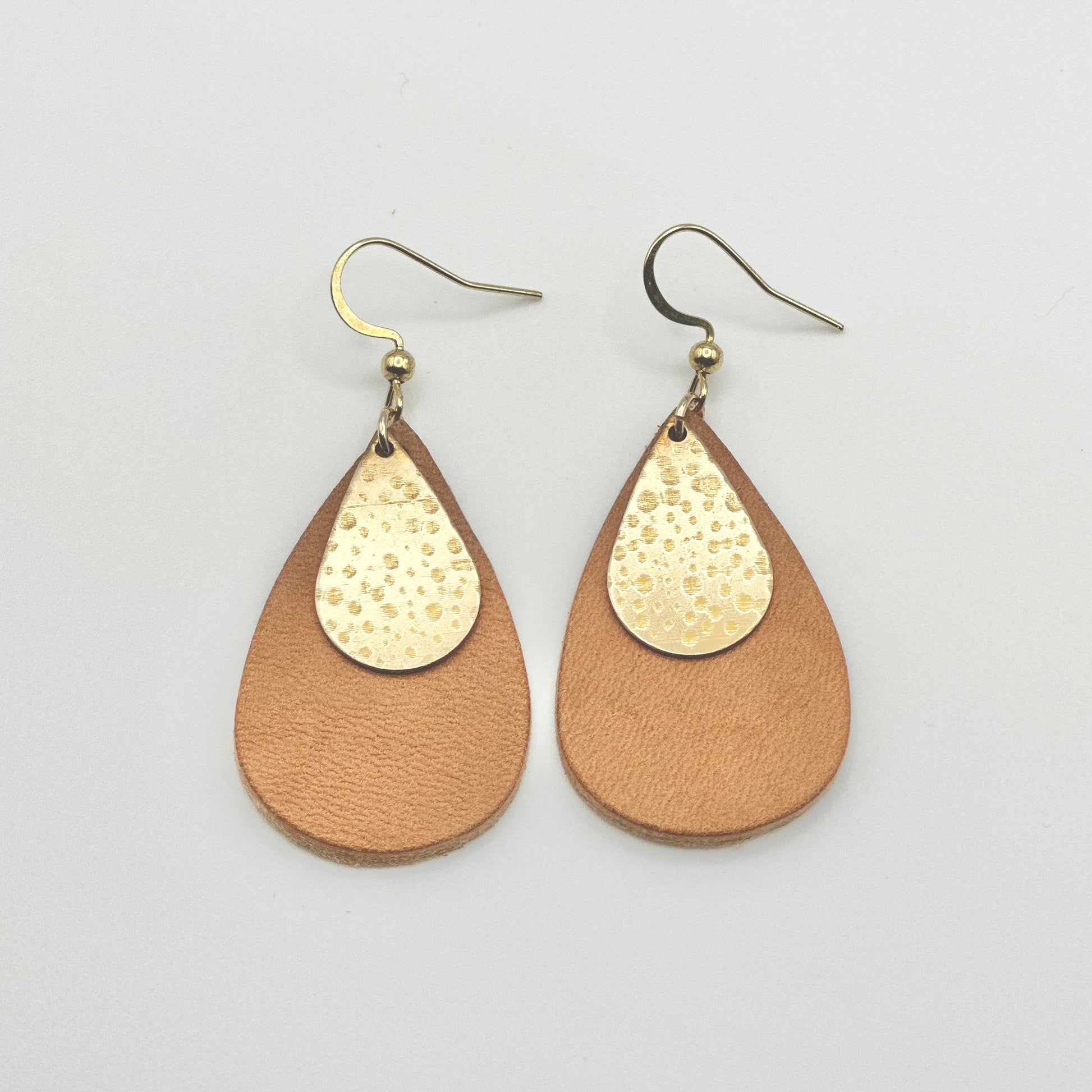 Leather Teardrop + Hammered Brass Earrings | Natural