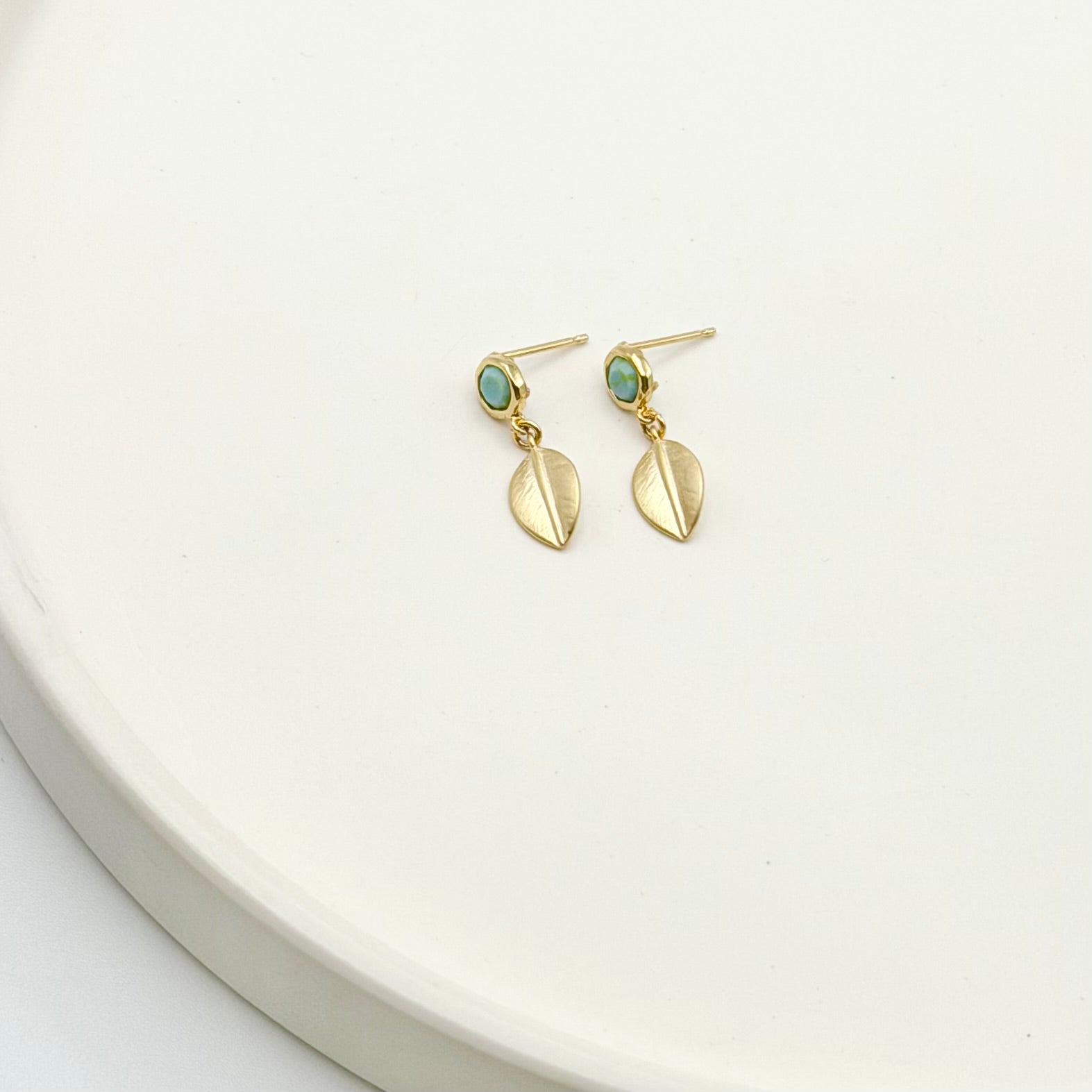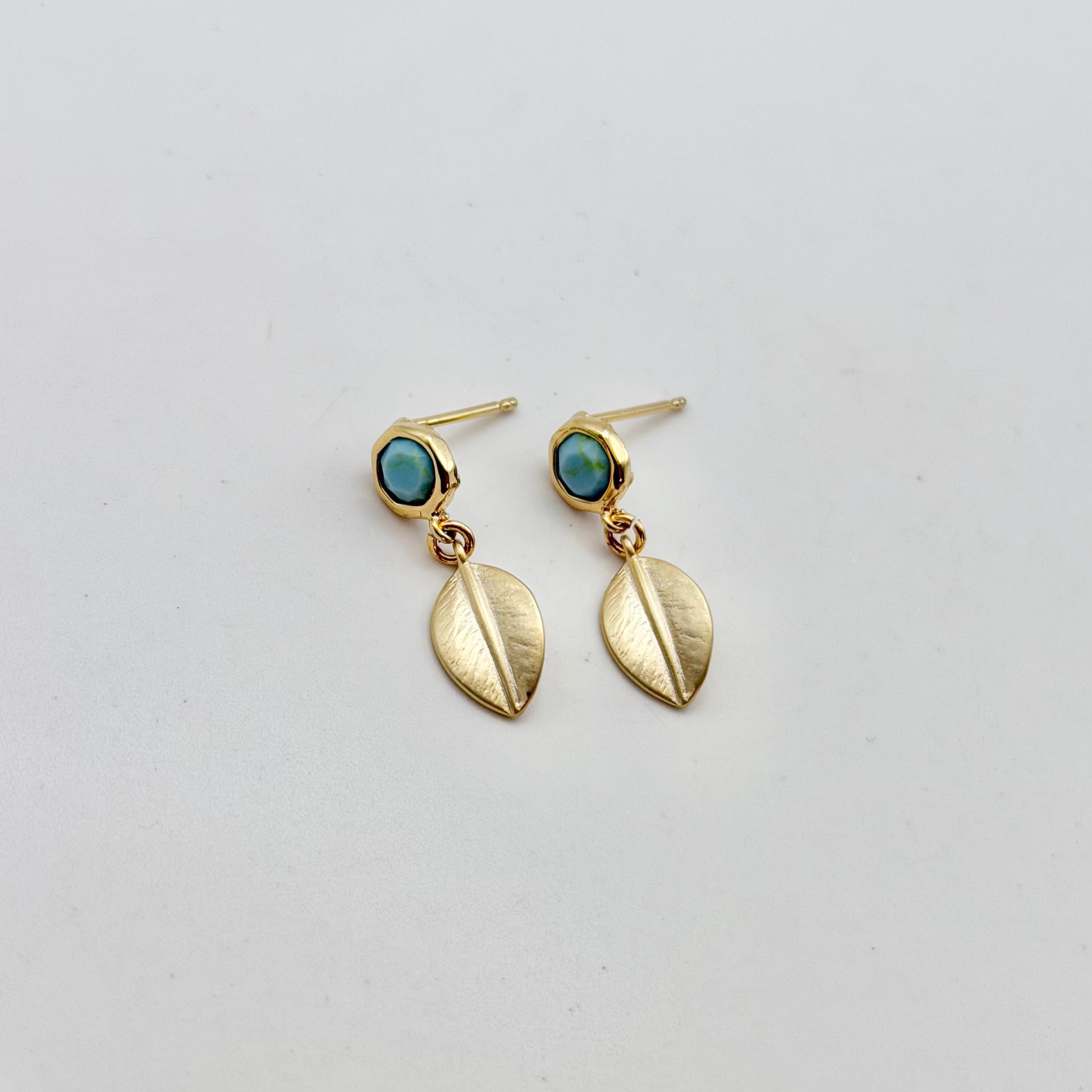 Add a delicate accent to that special outfit with the Small Turquoise Howlite Studs + Leaf Earrings ♡